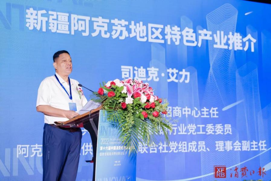 8月20日,由消費日報社、中國消費經濟高層論壇組委會共同舉辦,中共阿克蘇地委、阿克蘇地區行政公署支持的第十六屆中國消費經濟高層論壇暨數智賦能消費創新論壇在北京舉行。中國經濟社會理事會副主席、全國政協原副秘書長郭軍出席并發言;中國輕工業聯合會黨委常委、副會長,消費日報社社長,中國皮革協會理事長李玉中出席并致辭; 工信部消費品工業司原司長高延敏發表主題演講;消費日報社黨總支書記馬振華出席論壇;國家市場監督管理總局發展研究中心副主任謝冬偉,消費日報社副社長、總編輯趙曦,阿克蘇地區前方招商中心主任、中共阿克蘇地委供銷行業黨工委委員、阿克蘇地區供銷合作社聯合社黨組成員、理事會副主任司迪克·艾力等出席論壇并發言。