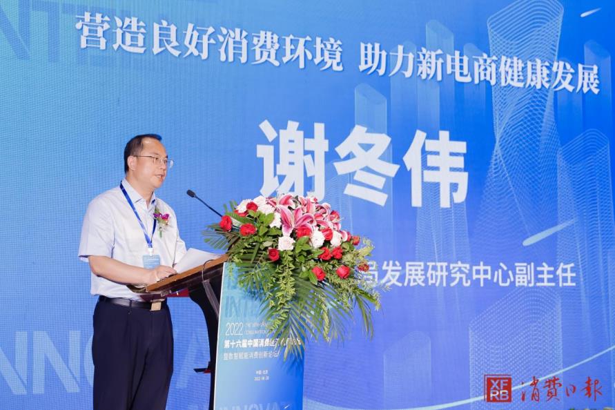 謝冬偉在“營造良好消費環境 助力新電商健康發展”的主題發言中分享了四個觀點:一是新電商助力經濟社會發展,消費環境進一步優化。二是充分發揮市場監管政策工具箱作用,推動新電商高質量發展。三是營造更加放心的消費環境,不斷提振消費信心。四是加強新業態新模式監管政策研究,助力新電商行穩致遠。
