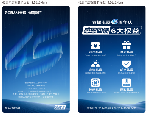 今年的政府工作報告指出,從優化供給等方面綜合施策,激發消費潛能。老板電器作為行業領軍者,積極響應國家號召。正值老板電器成立45周年之際,為了讓更多消費者感受數字烹飪的科技,也為了提振市場信心,老板電器在一年一度的“中國新廚房節”上,重磅推出周年慶感恩行動,為消費者帶來十大服務承諾五大超值服務,推動周年慶安檢進萬家行動,更有六大重磅權益為消費者送上億元補貼,推動數字廚電智能科技走進千家萬戶,打造屬于用戶的“廚房造物節”。