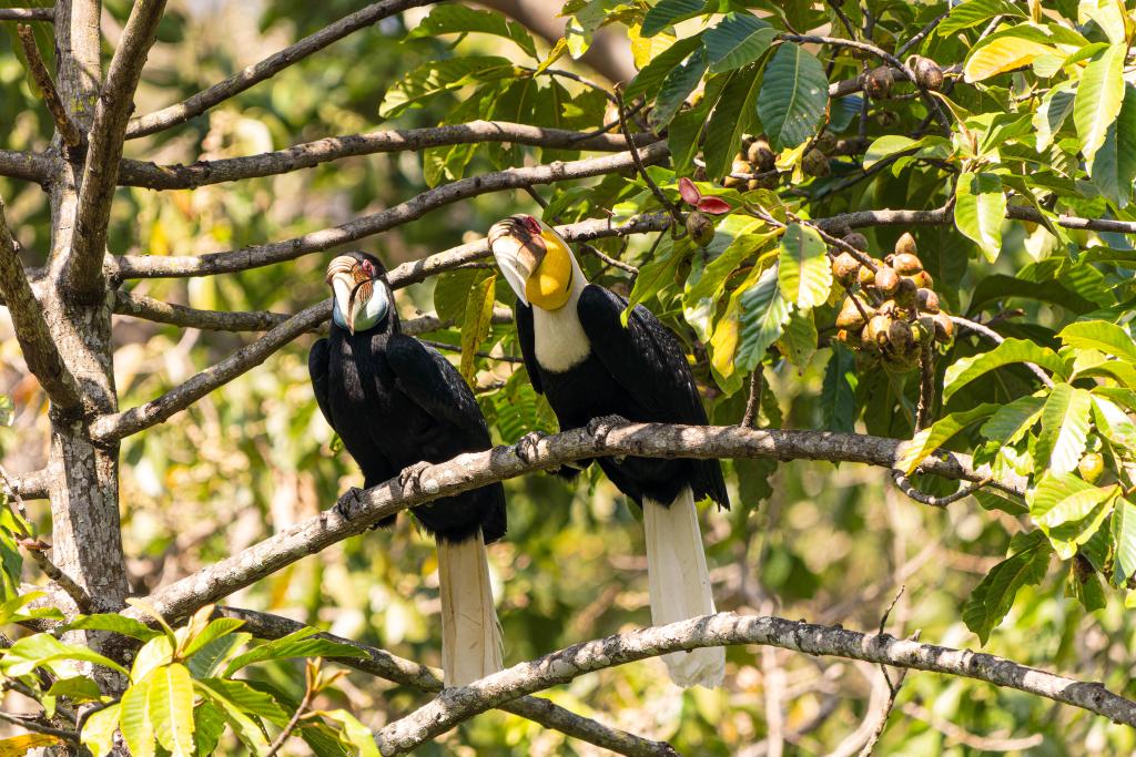 ??春節前夕,在云南銅壁關省級自然保護區內,國家一級重點保護野生動物花冠皺盔犀鳥和冠斑犀鳥等犀鳥進入選擇巢穴、準備繁育的關鍵時期。“犀鳥巡護隊”隊員在保護區管護局的指導下,深入山林進行犀鳥巢址調查、食源樹種監測與繁殖行為記錄,并同步開展棲息地巡護和防火安全宣傳等工作,全方位保障犀鳥繁殖季安全。