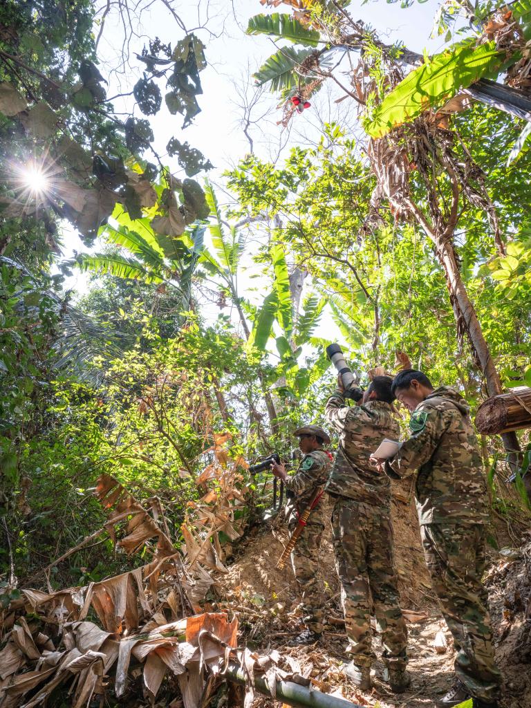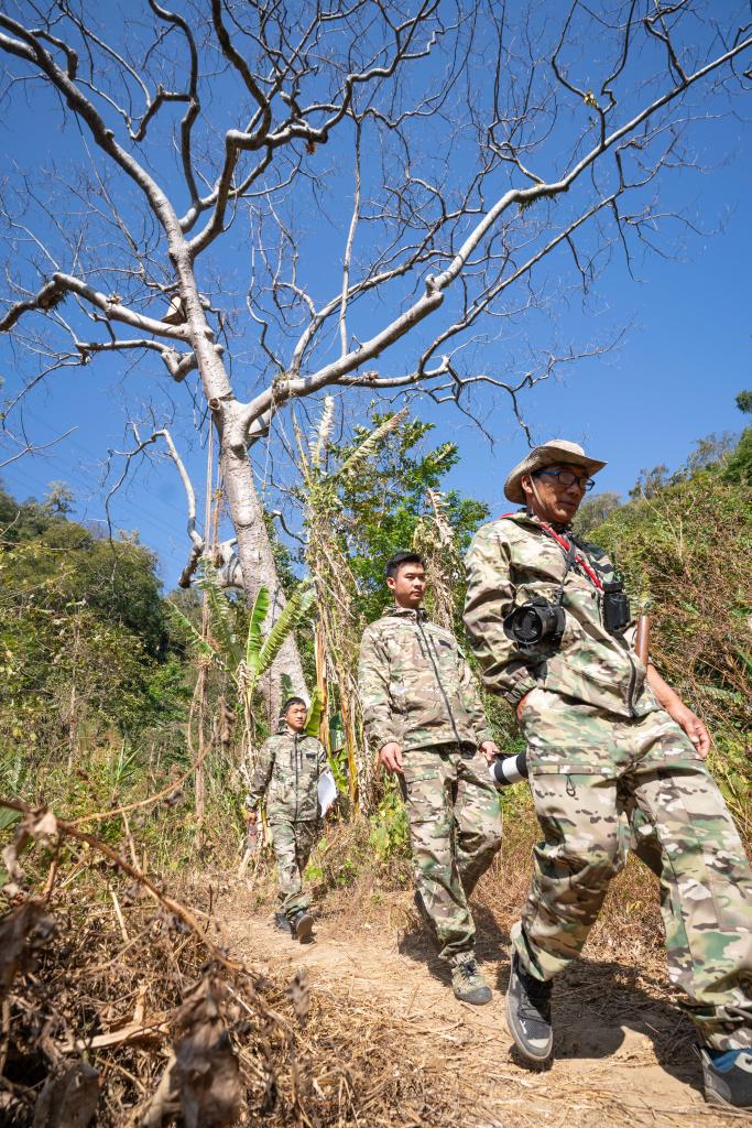 ??據了解,“犀鳥巡護隊”主要由云南省德宏州盈江縣太平鎮村民和護林員組成,自2021年組建以來,已發展隊員26人,成為邊境生物多樣性保護的基層力量。在長期的巡護實踐積累中,不少隊員成長為“鳥導”(觀鳥導游)或生態產業帶頭人,實現生態保護與社區發展的良性互動。