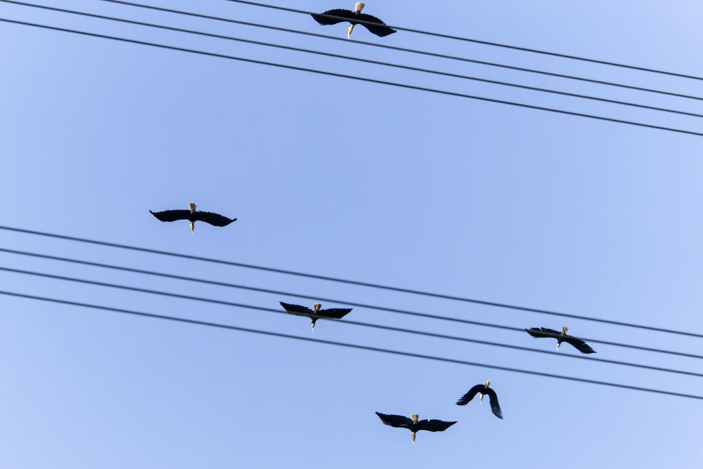 ??2月7日,犀鳥飛過盈江縣太平鎮石梯村上空。