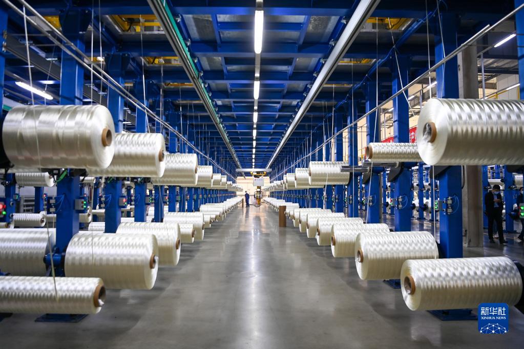 在吉林化纖集團國興碳纖維公司生產車間,工人在整理碳纖維原絲(2022年10月31日攝)。新華社記者 顏麟蘊 攝